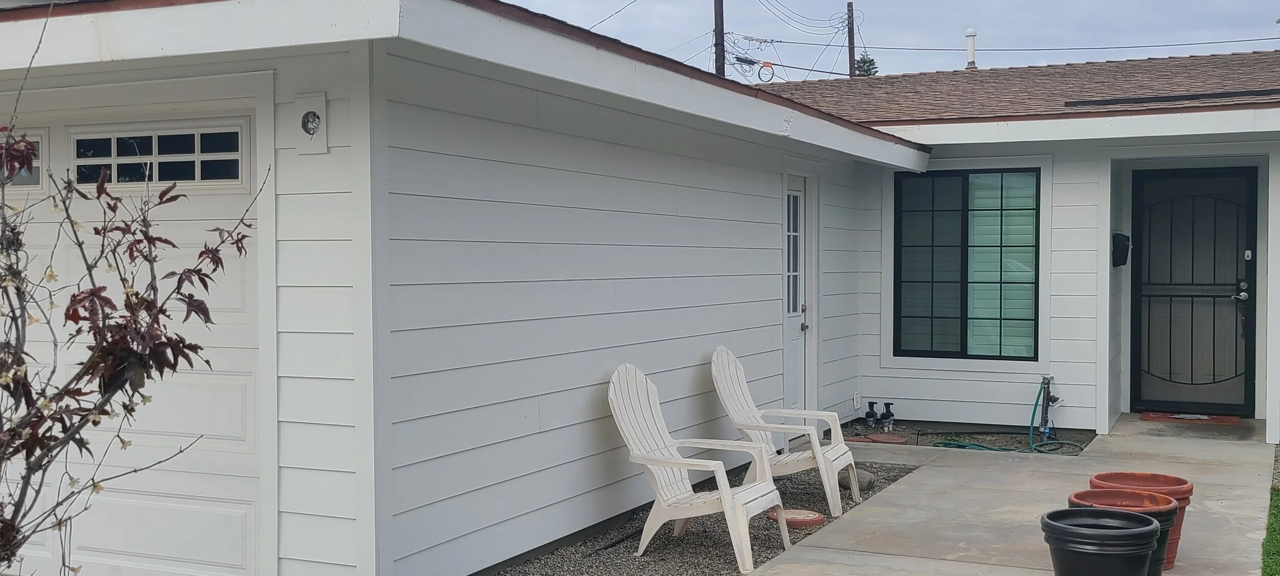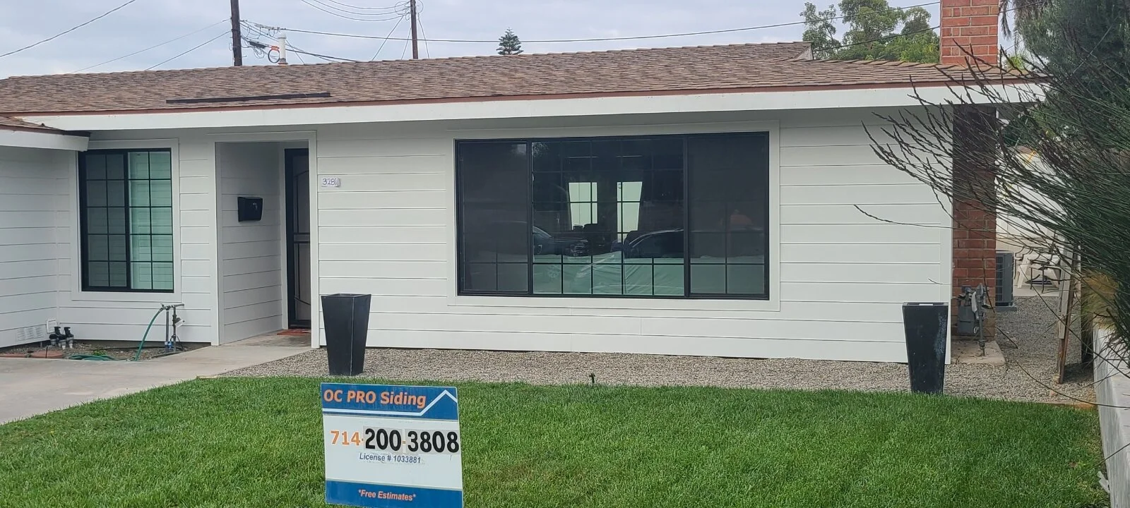 This job was a combo job, the homeowner had us replace her windows and her siding. We installed Black Milgard Windows with grids and James Hardie ColorPlus Arctic White lap siding. The end result gave a beautiful contrast to her remodel.