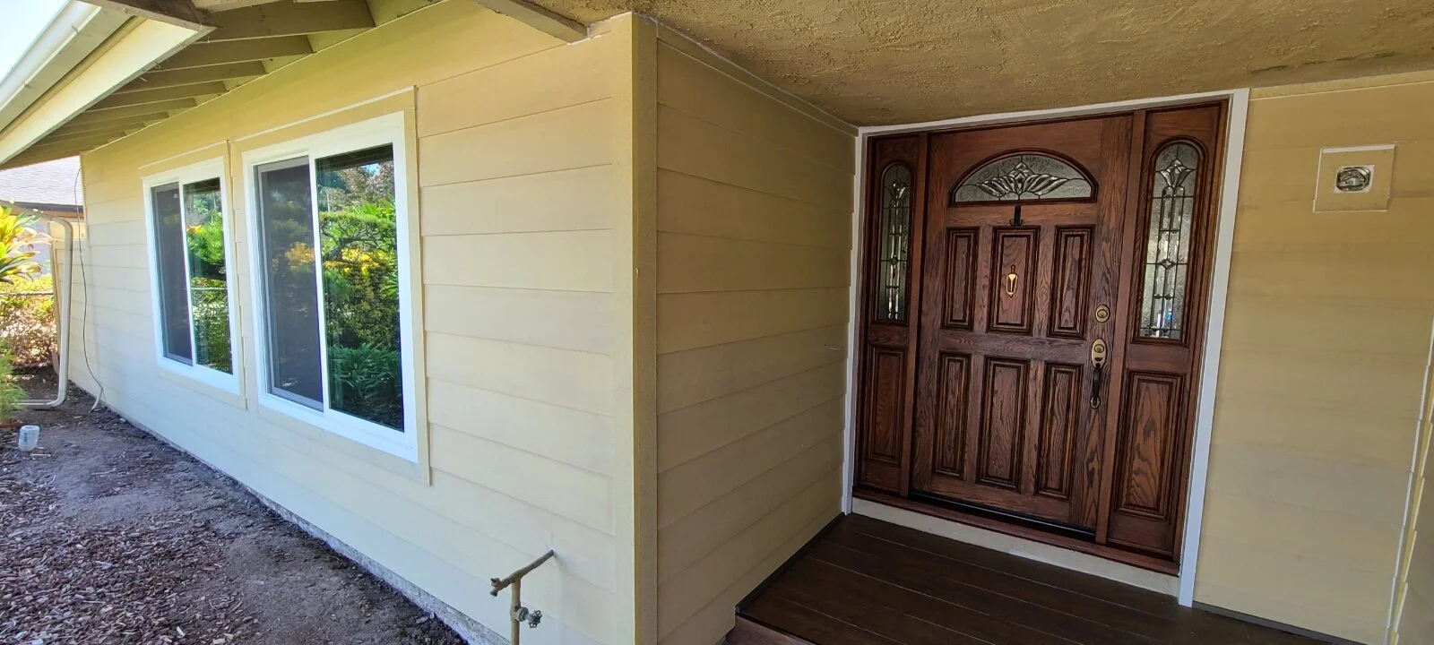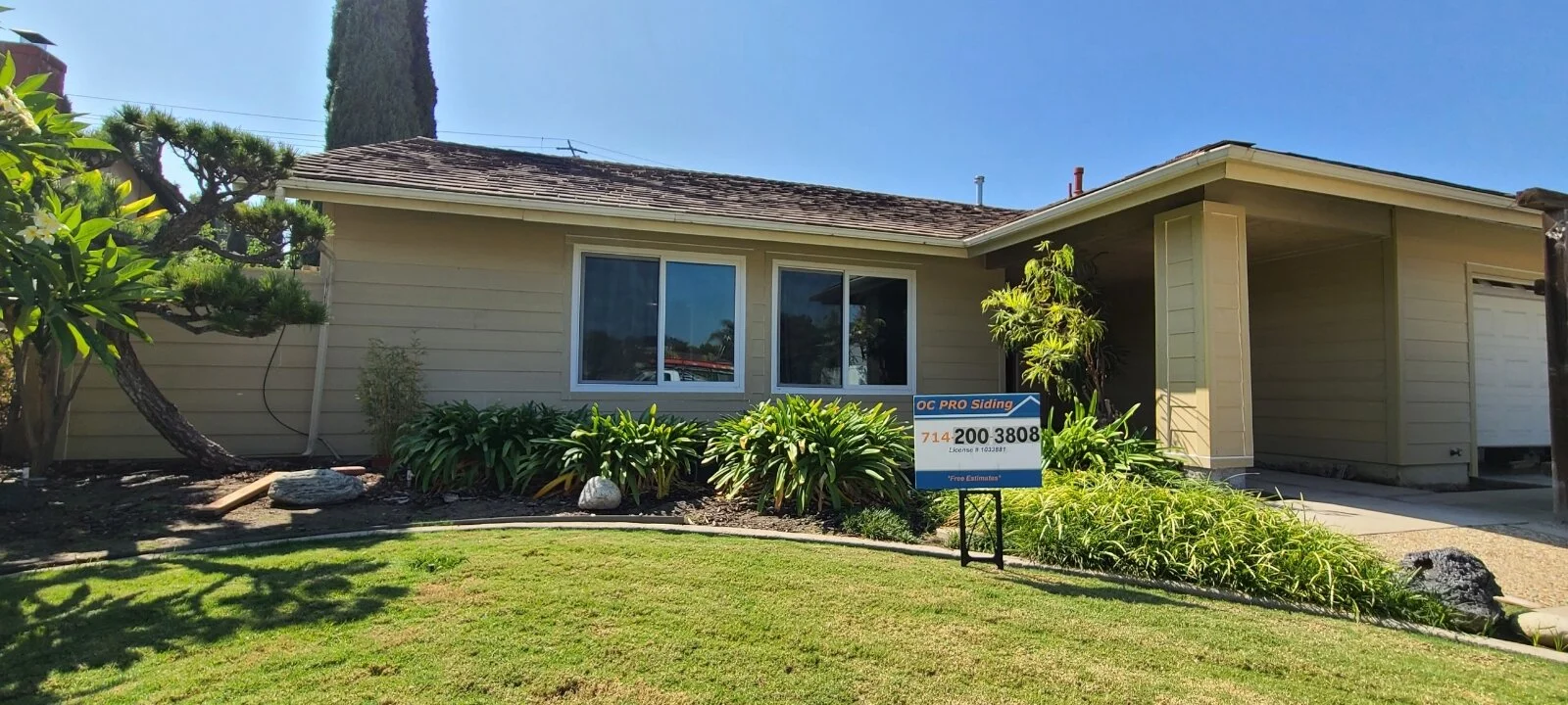 We got a call from the customer who wanted to give his mother’s home a facelift. He let us know that he had drove by a job we had just completed for his friend in Placentia and wanted the same siding installed on the home. He went with a slightly wider that standard exposure. We installed James Hardie 9-1/4” Primed Lap Siding. The 8-1/4” Hardie siding is generally the standard and give you a 7” exposure, but in this case, with the larger size, his home’s siding has an 8” exposure.